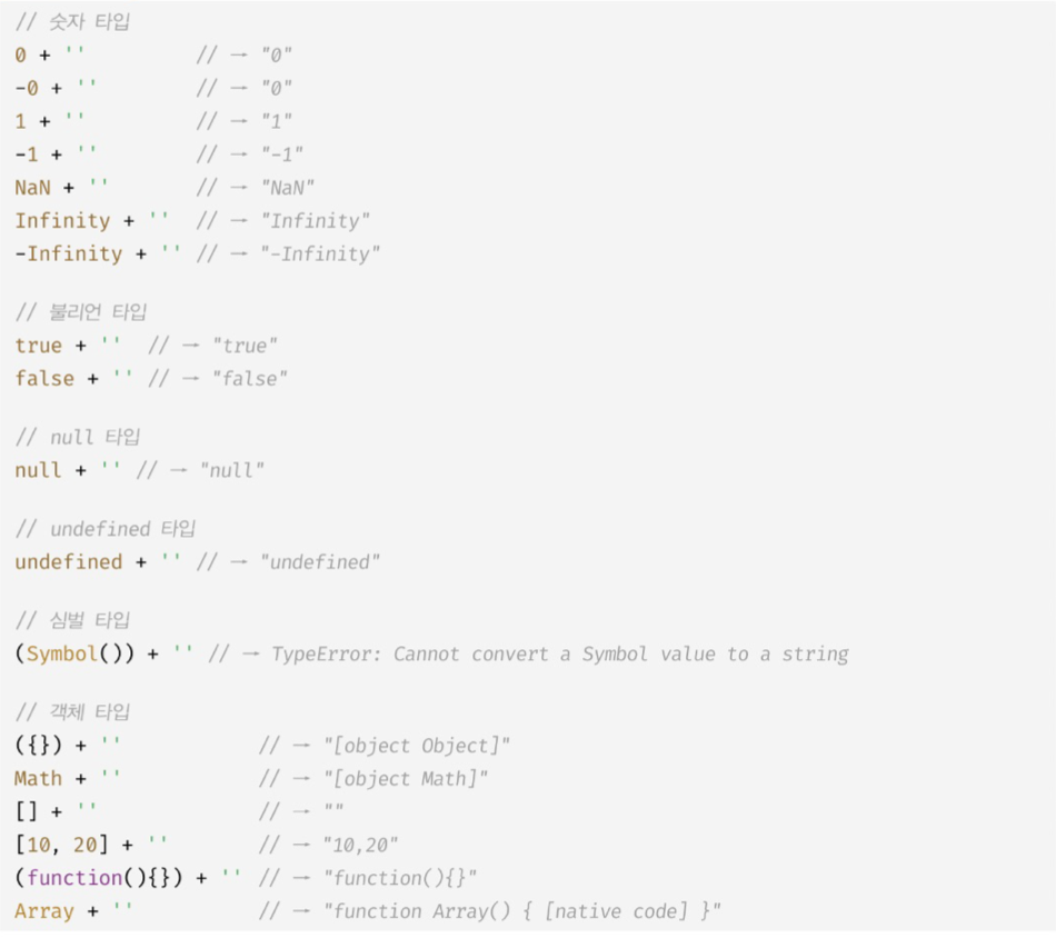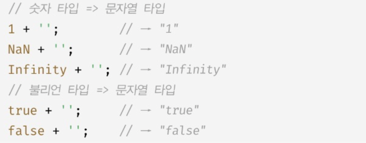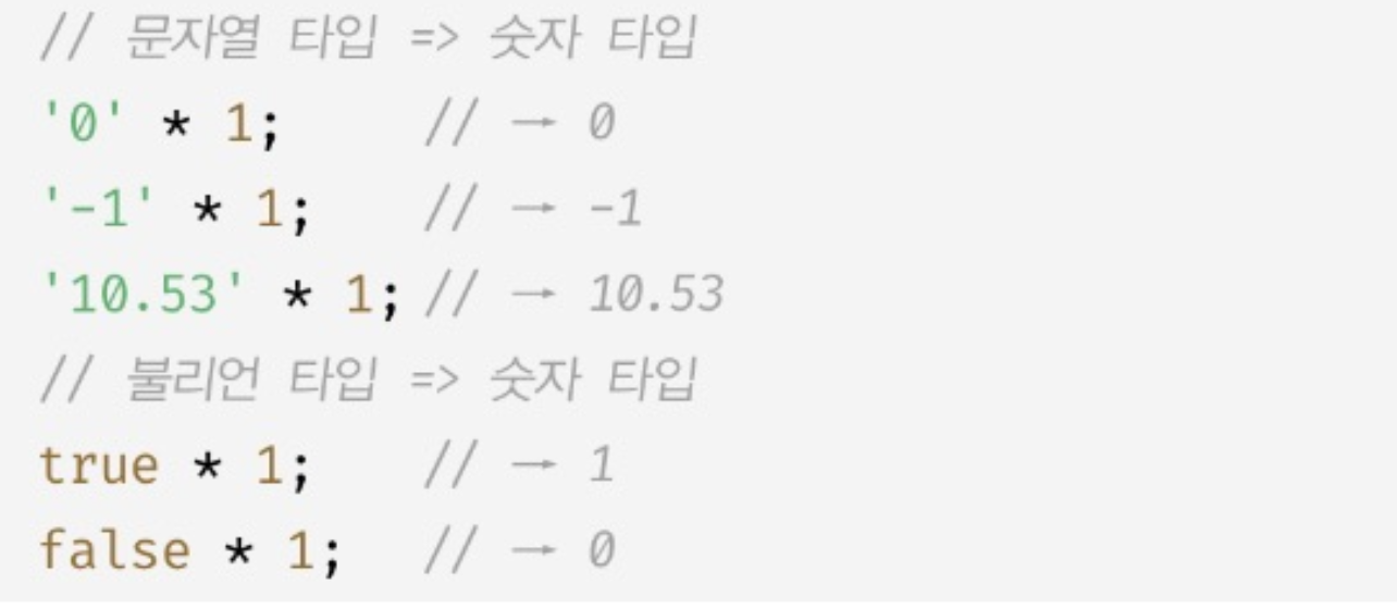 2. ํํ์์ ํ๊ฐํ๋ ๋์ค JS ์์ง์ ์ํด ์๋ฌต์ ์ผ๋ก ํ์ ์ด ์๋๋ณํํ๋ ์๋ฌต์ ํ์ ๋ณํ์ด ์๋ค.