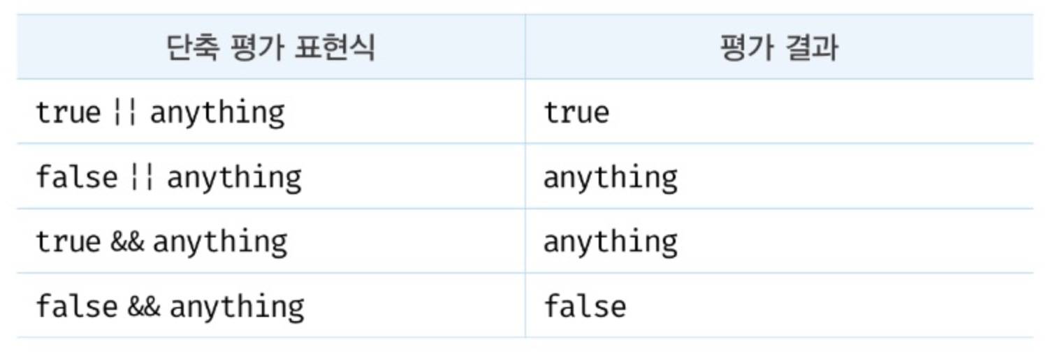 ๋ณดํต ๋ ผ๋ฆฌํฉ(or - ||) ๋๋ ๋ ผ๋ฆฌ๊ณฑ(and - &&) ์ฐ์ฐ์์ ํ๊ฐ ๊ฒฐ๊ณผ๋ ๋ถ๋ฆฌ์ธ ๊ฐ์ด์๋ค.
