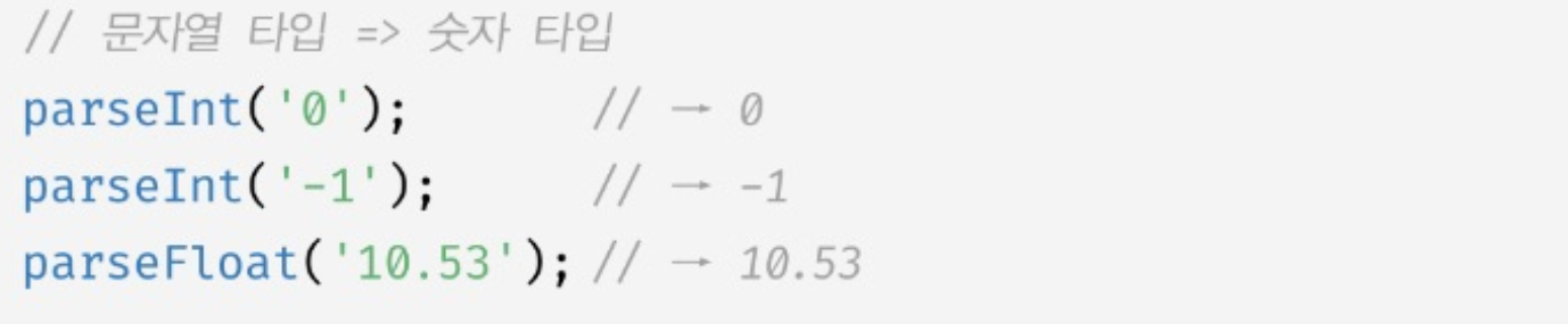 2. parseInt, parseFloat ํจ์๋ฅผ ์ฌ์ฉํ๋ ๋ฐฉ๋ฒ(๋ฌธ์์ด๋ง ์ซ์ ํ์ ์ผ๋ก ๋ณํ ๊ฐ๋ฅ)