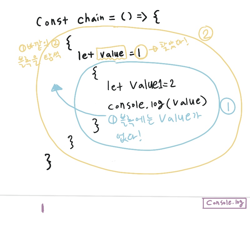 4. ์ด๋ ๊ฒ ์ค์ฝํ๊ฐ ๊ณ์ธต์ ์ผ๋ก ์ฐ๊ฒฐ๋ ๊ฒ์ด ์ค์ฝํ ์ฒด์ธ.