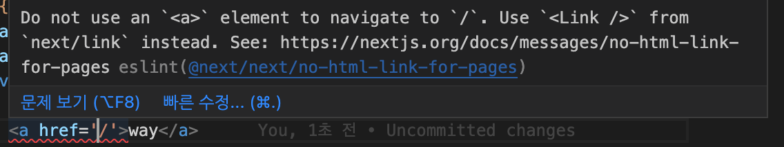 '/'로 이동하기 위해 <a>태그 대신 next/link에서 <Link>를 사용하라는 내용이었다.